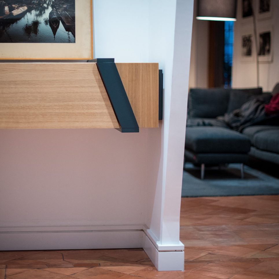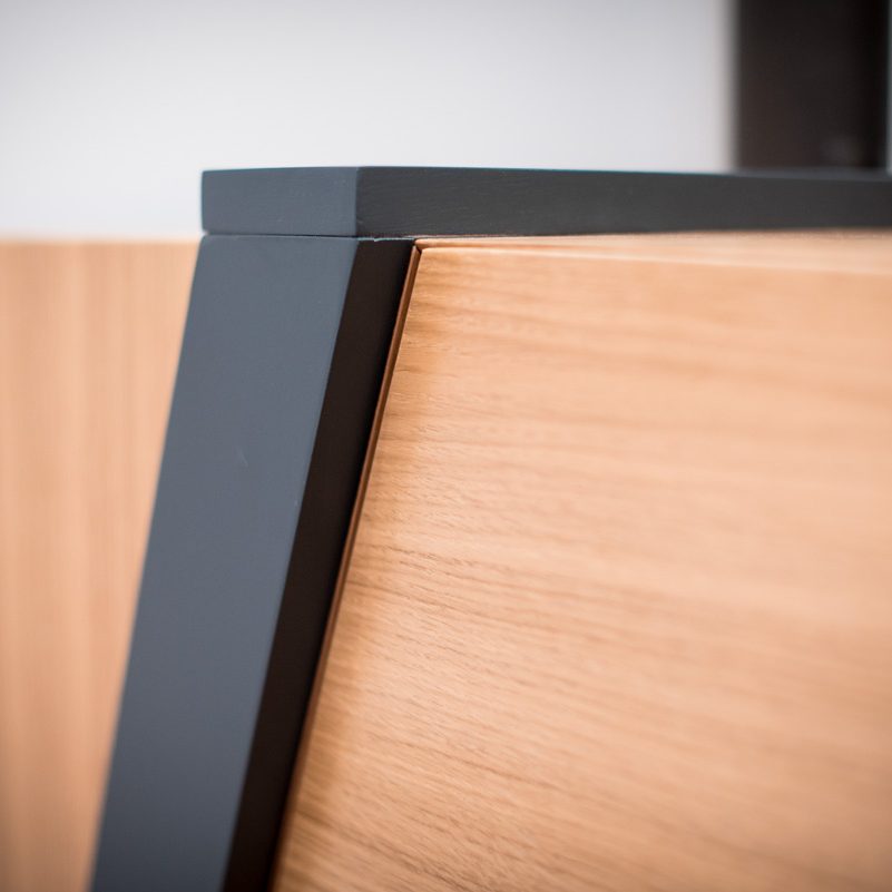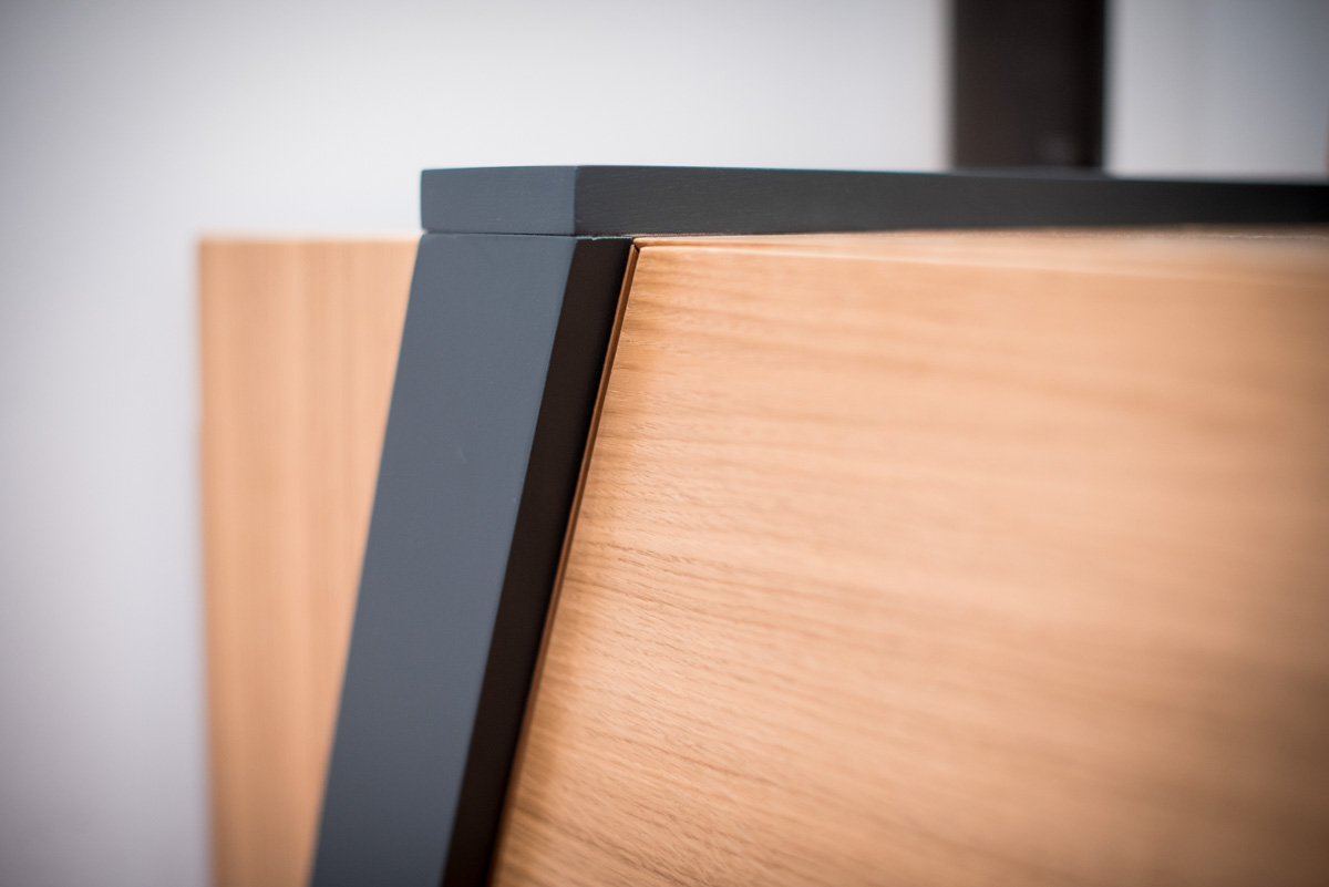 Il mobile “31” è un capolavoro di design contemporaneo, caratterizzato da fasce oblique laccate nero antracite che avvolgono un cassettone principale in rovere. Il nome “31” deriva proprio dal taglio obliquo di queste fasce. Sospeso per accentuarne la leggerezza visiva, il mobile presenta un cassetto centrale a forma trapezoidale, delimitato dalle fasce, offrendo un’ampia capacità di archiviazione. Le venature del rovere, disposte orizzontalmente e verticalmente, creano un affascinante contrasto con le fasce nere. Un altro elemento distintivo sono le porzioni laterali rientrate, laccate nere, che permettono di incassare il mobile in una nicchia, ottimizzando lo spazio. Questo mobile non è solo funzionale, ma anche un’opera d’arte moderna, ideale per diversi ambienti, dall’ingresso al soggiorno, fino agli spazi di lavoro. “31” cattura l’attenzione con il suo design innovativo e la qualità artigianale.