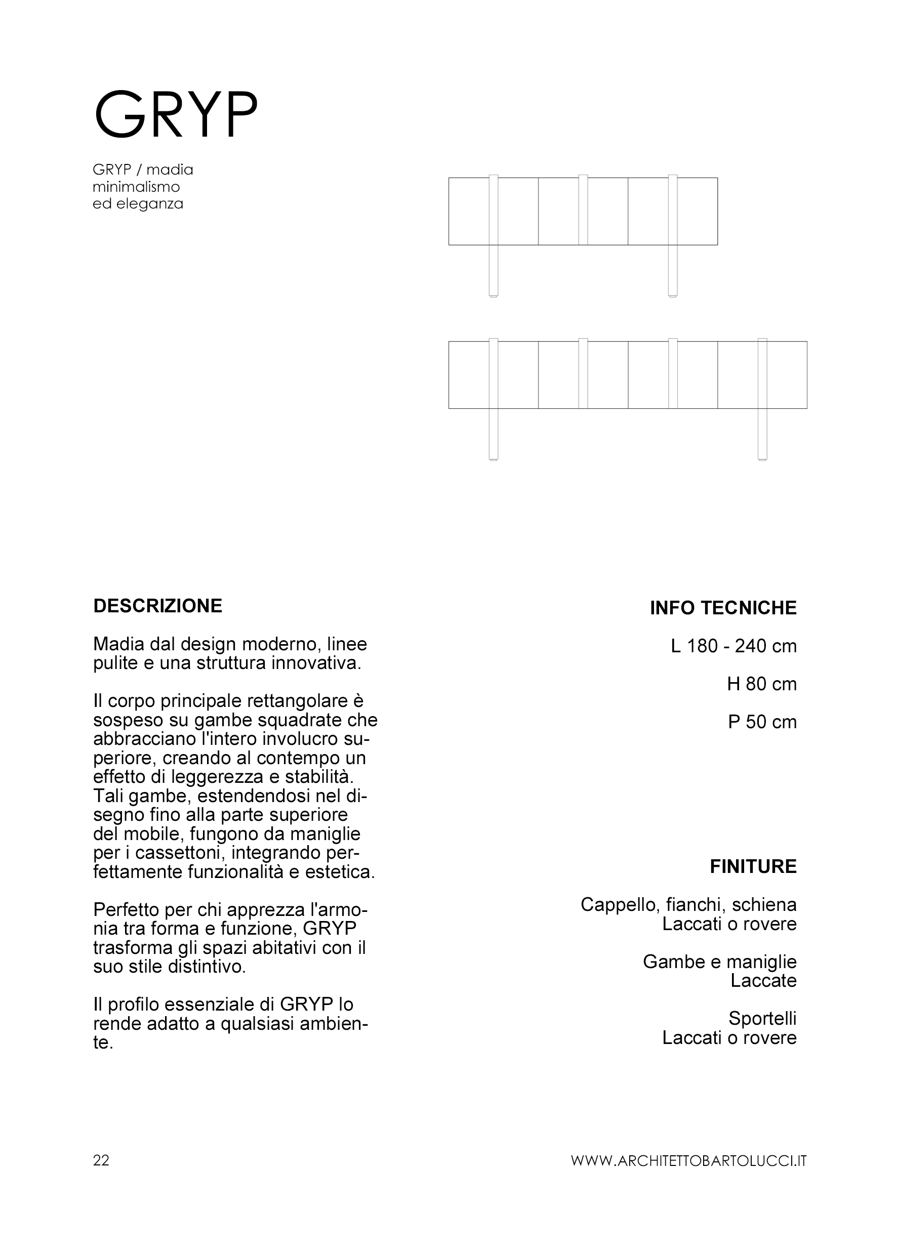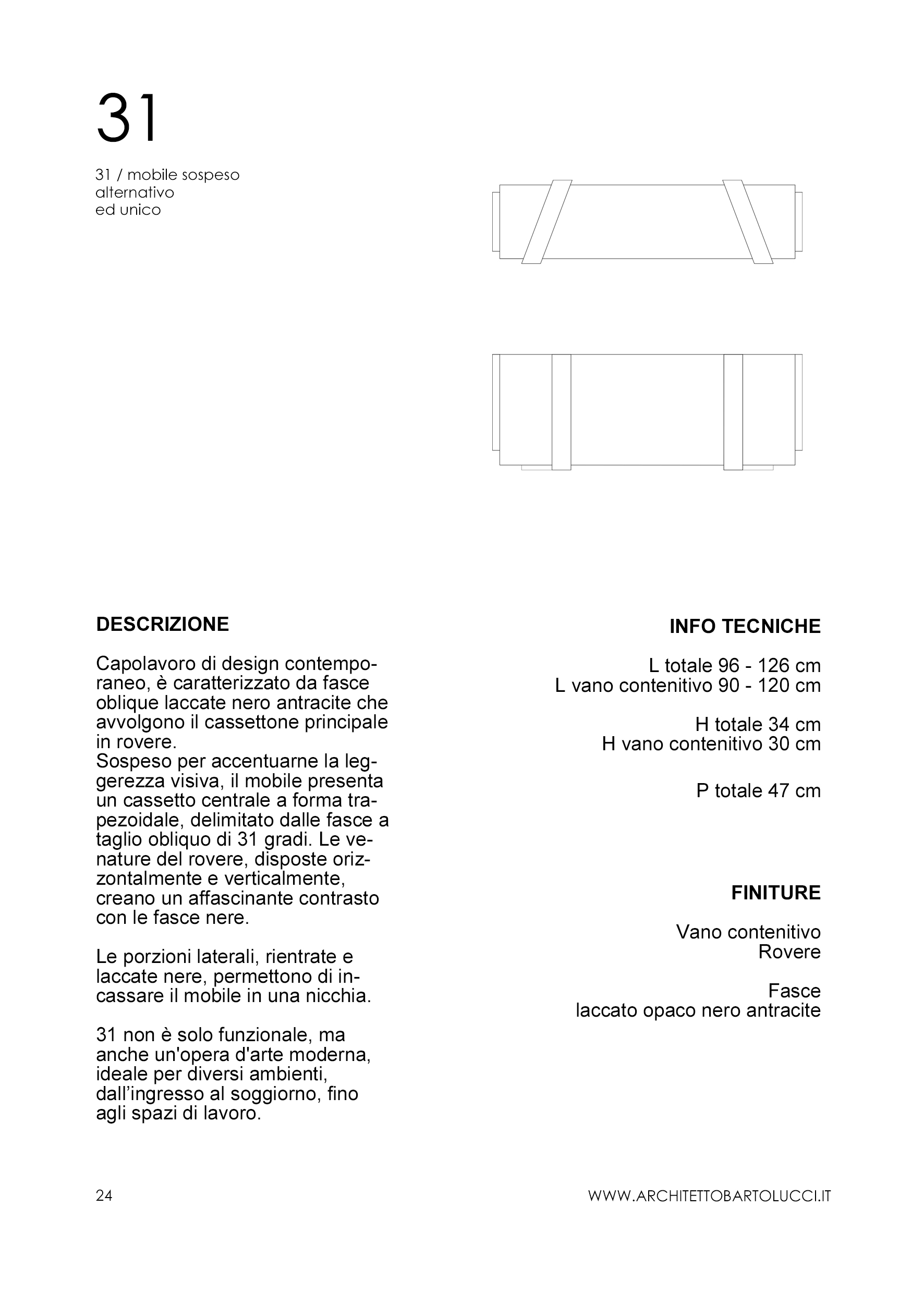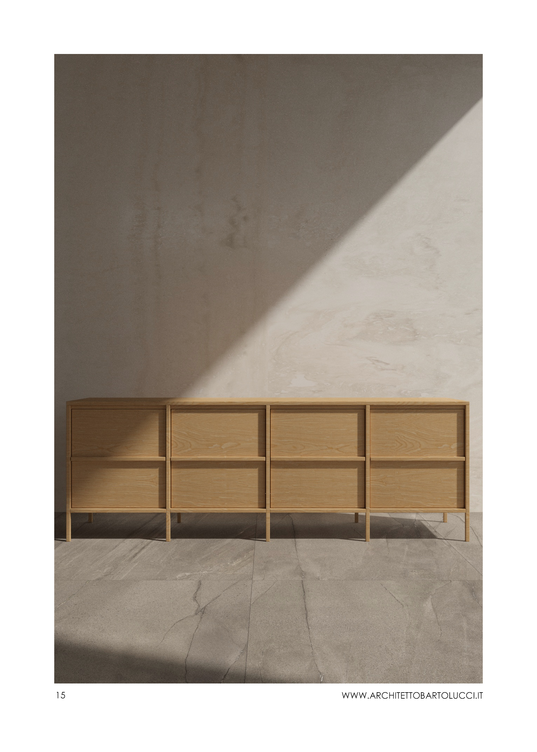Ogni mobile è personalizzabile: la collezione include dieci pezzi di design pensati per avere misure precise, ma è possibile richiederne adattamenti e personalizzazioni. L’Architetto Bartolucci lavora a stretto contatto con i clienti per comprendere appieno le loro necessità e desideri; il dialogo costante permette di tradurre le idee in soluzioni di design concrete e pratiche.