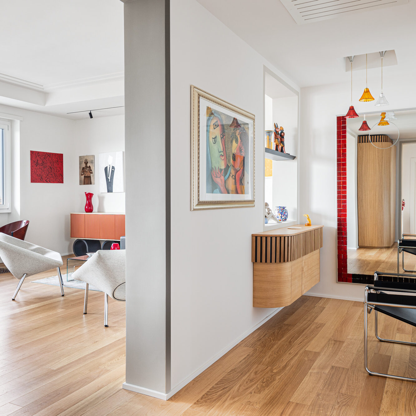 La progettazione di questo appartamento è stata una delle sfide più grandi con cui ci siamo confrontati. Il percorso progettuale è stato totalmente diverso dal solito, siamo partiti dagli arredi in possesso dei clienti e abbiamo cucito gli ambienti intorno a loro.