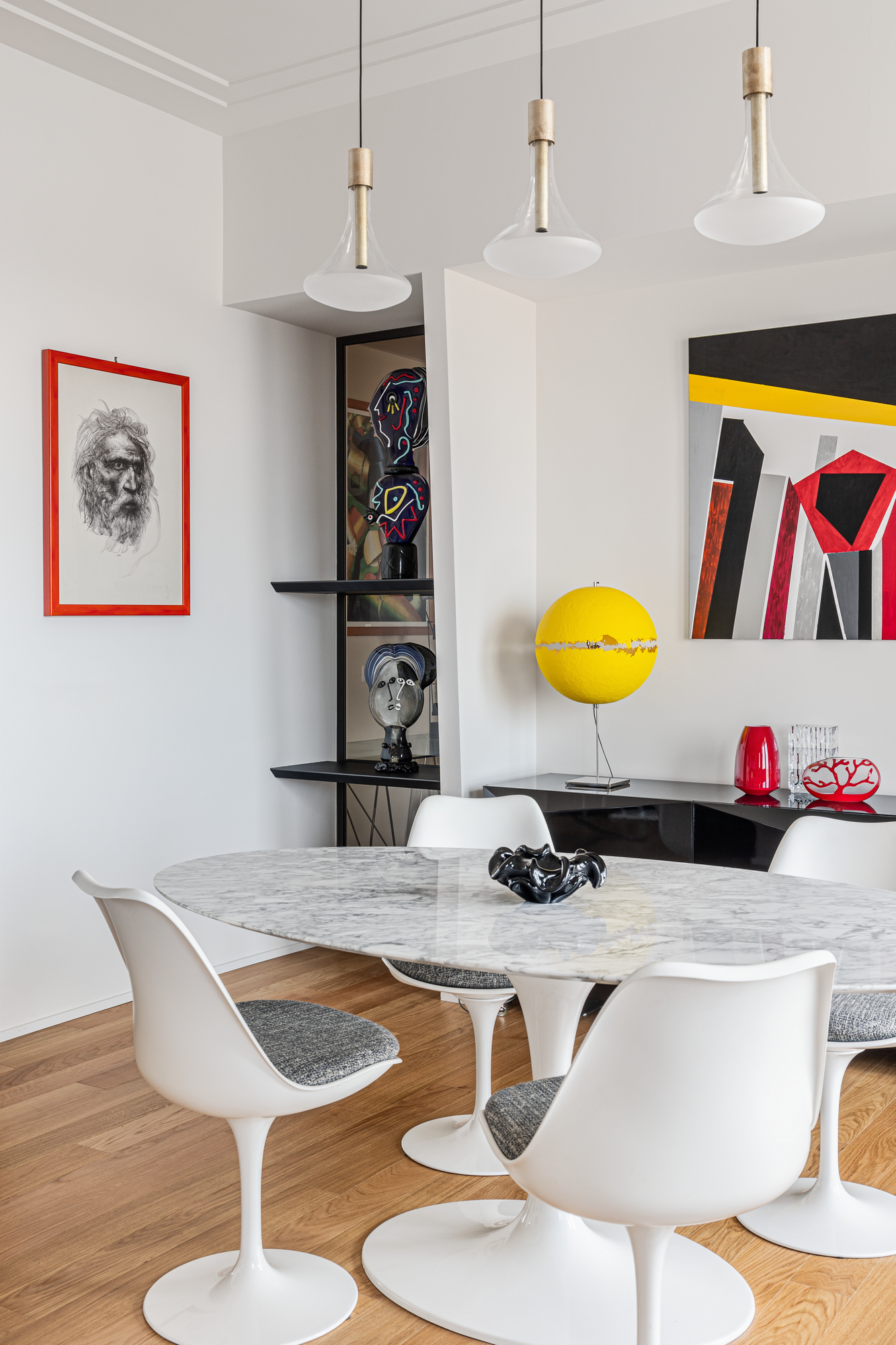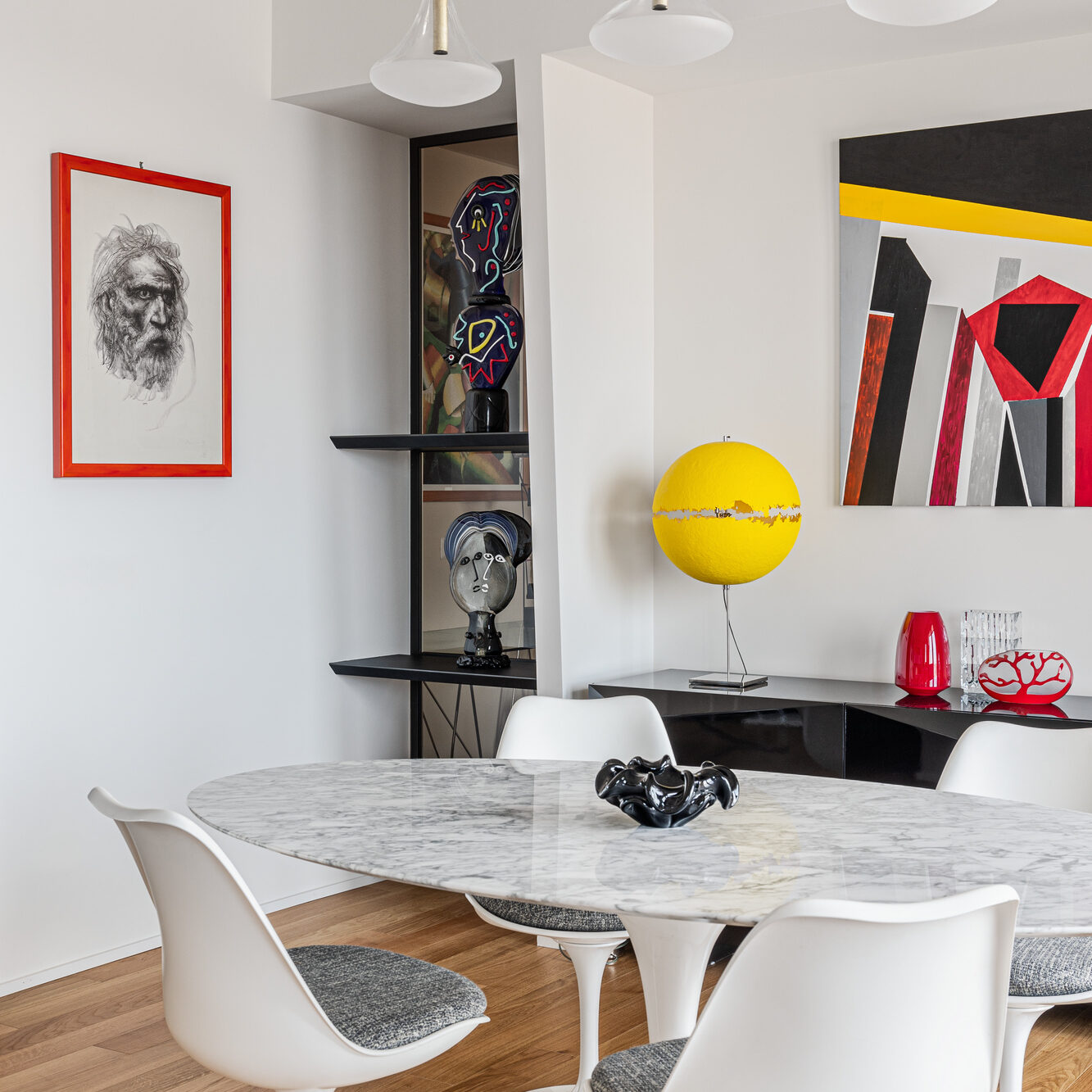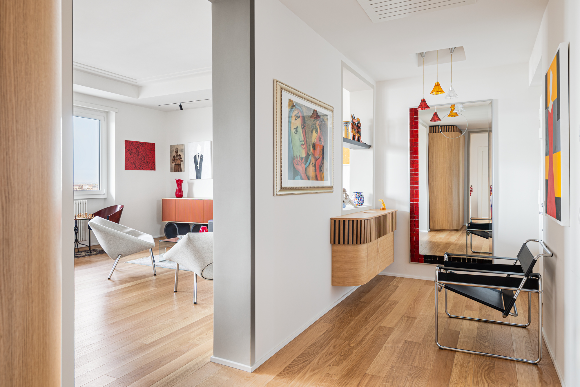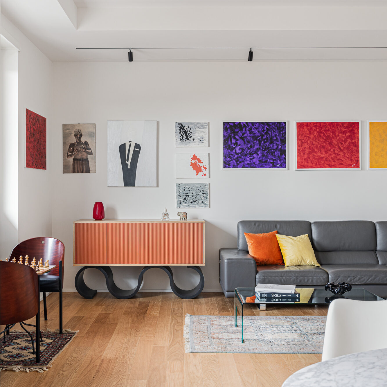 In questa casa d’artista abitata da un talentuoso pittore, ogni dettaglio racconta una storia tessendo un legame indissolubile tra arte e architettura. Ogni angolo è un dipinto vivente, con opere che dialogano con gli spazi e i mobili su misura che abbiamo avuto il privilegio di progettare. È stato un onore contribuire al mondo creativo di questa straordinaria dimora.