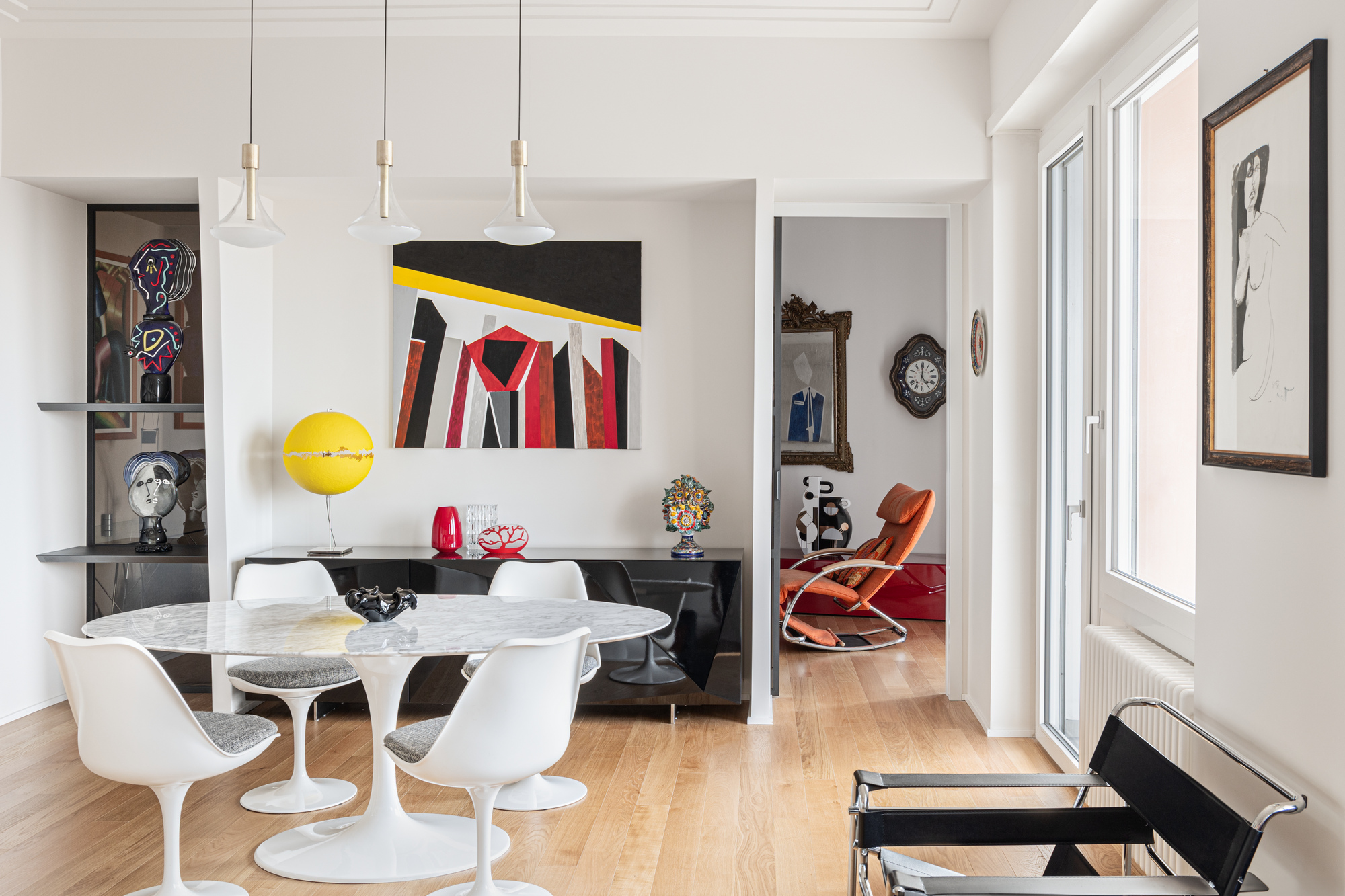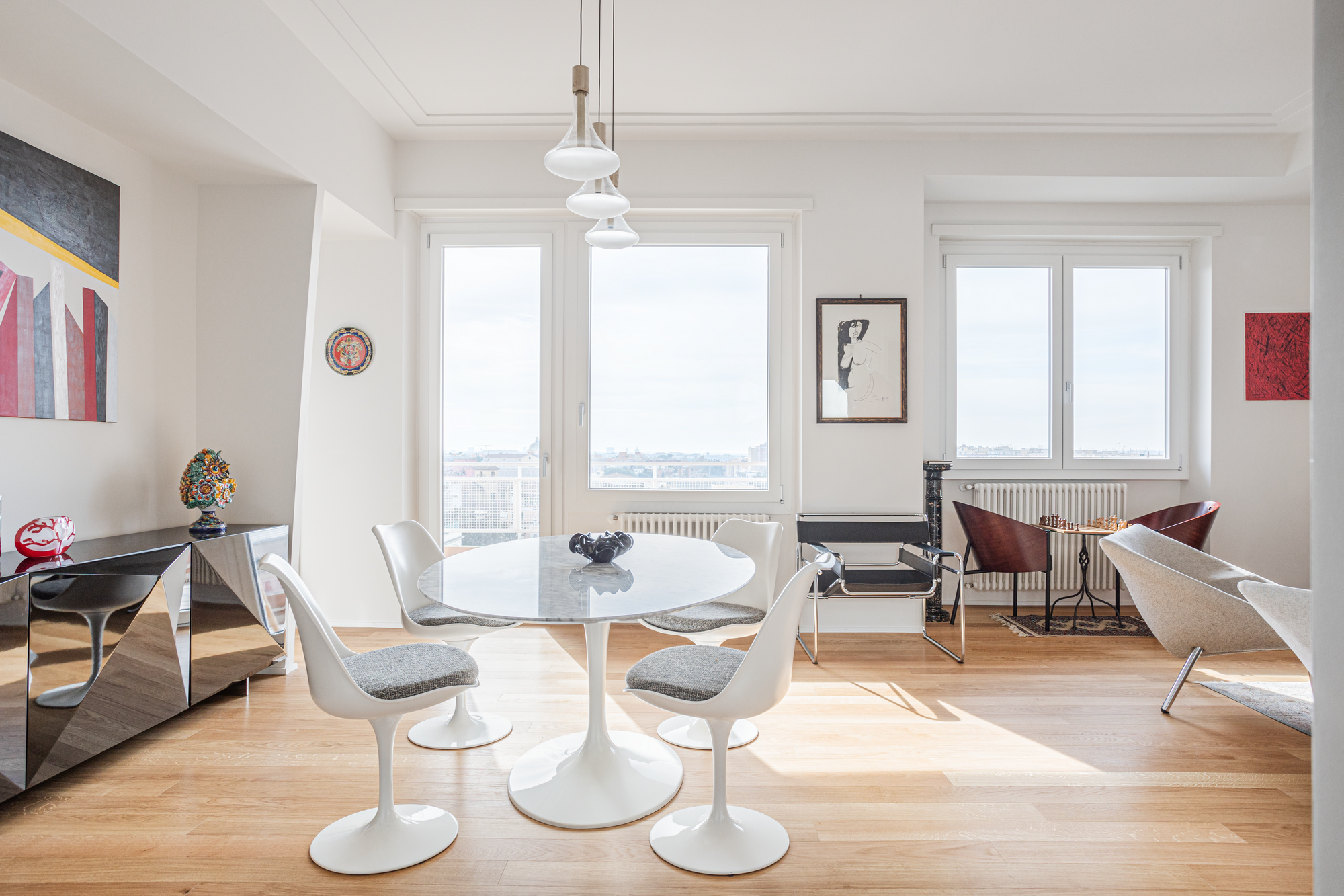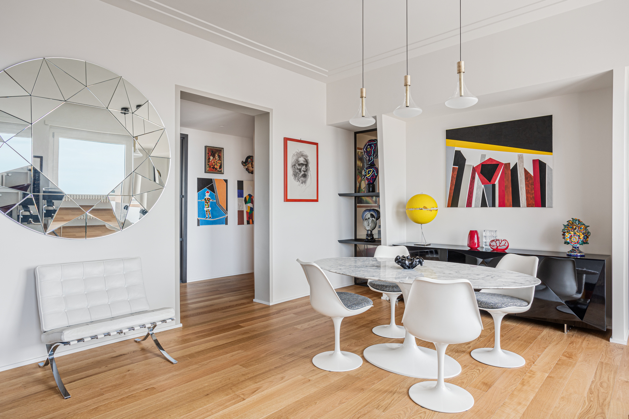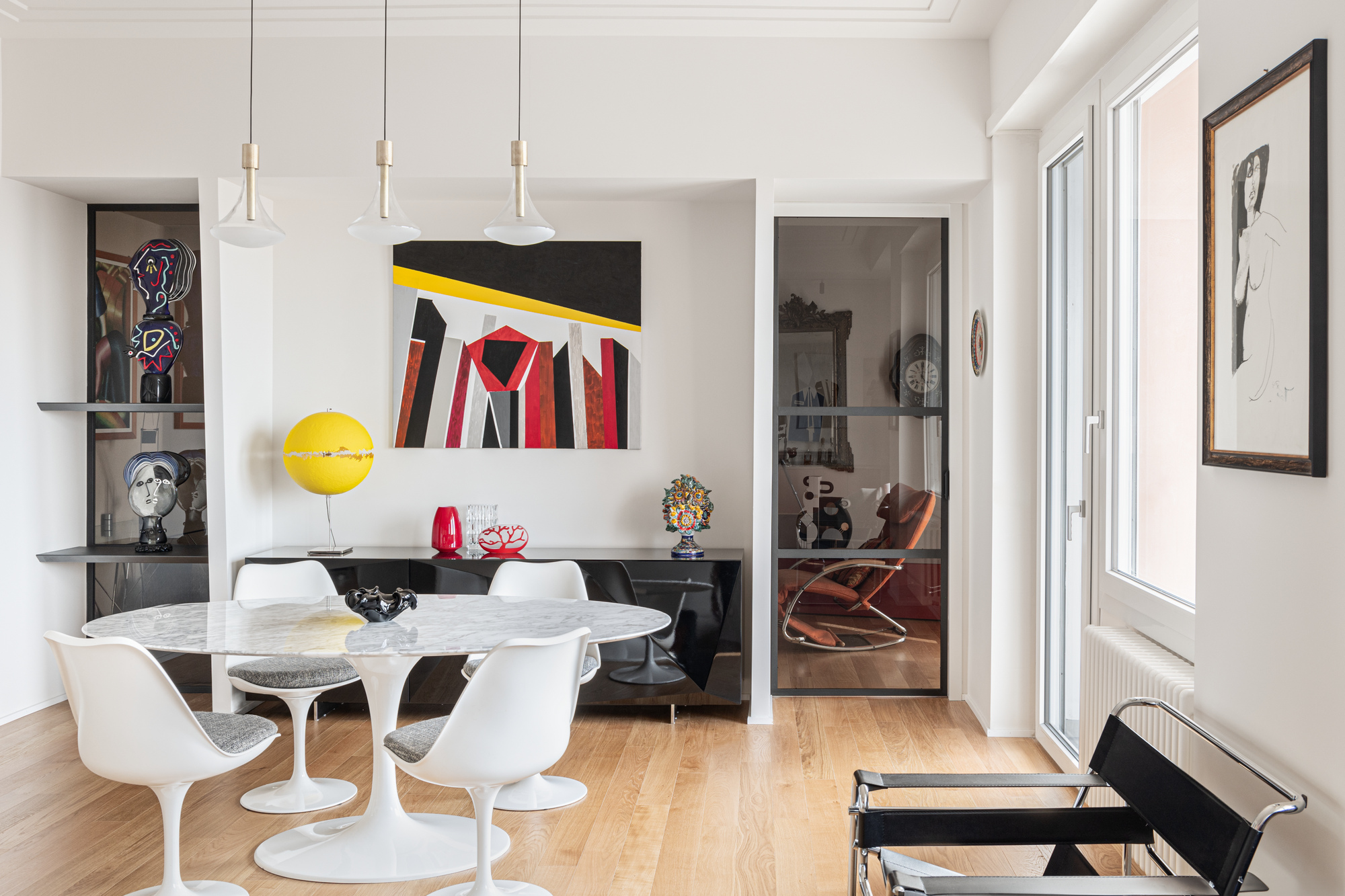 Le pareti vetrate fisse e scorrevoli, le opere d’arte e gli arredi di design che abbiamo progettato, quelli di Acerbis, Gallotti&Radice, Catellani&Smith, Riflessi e tanti altri, rendono gli ambienti unici e inimitabili.