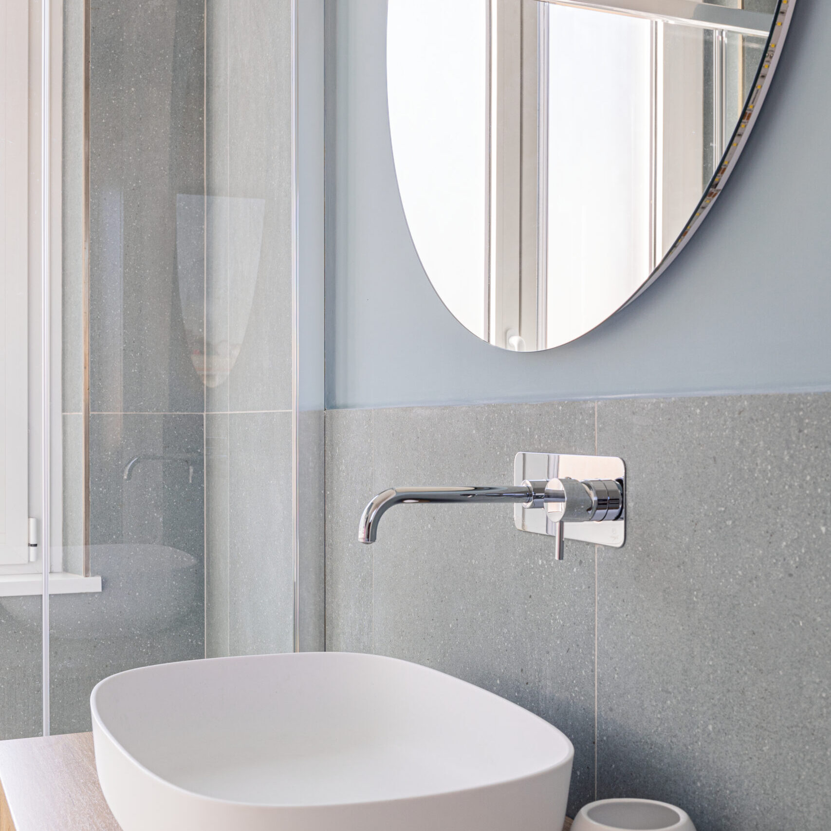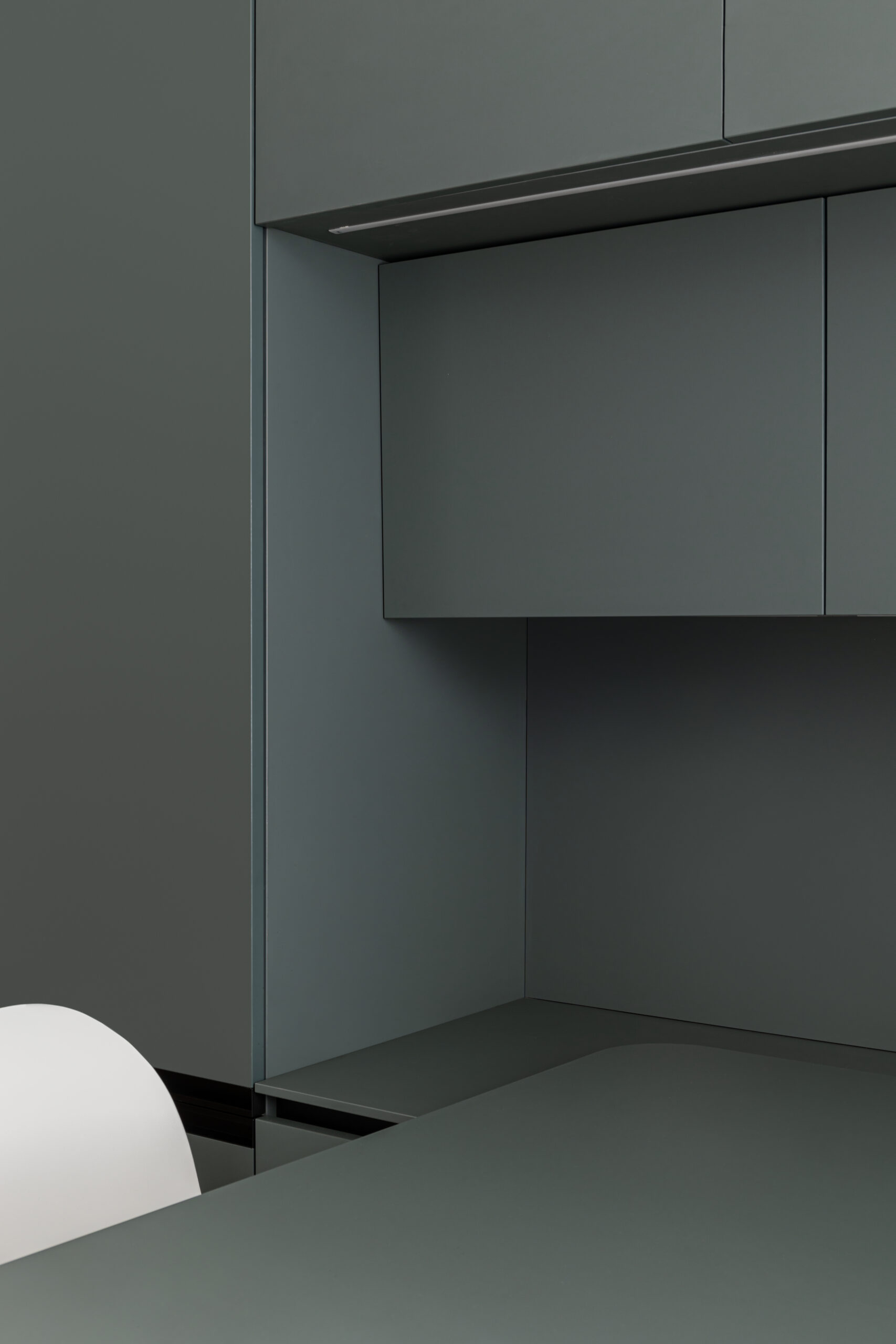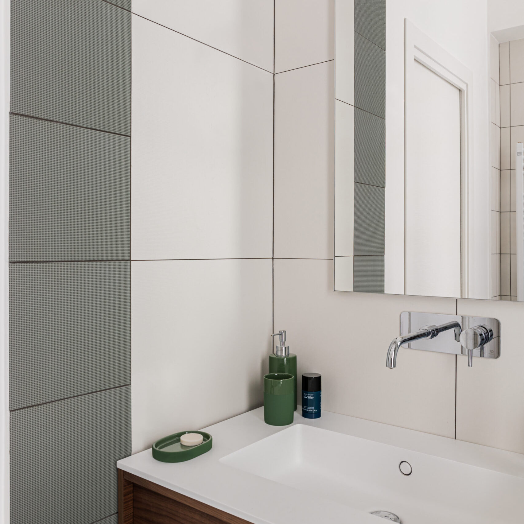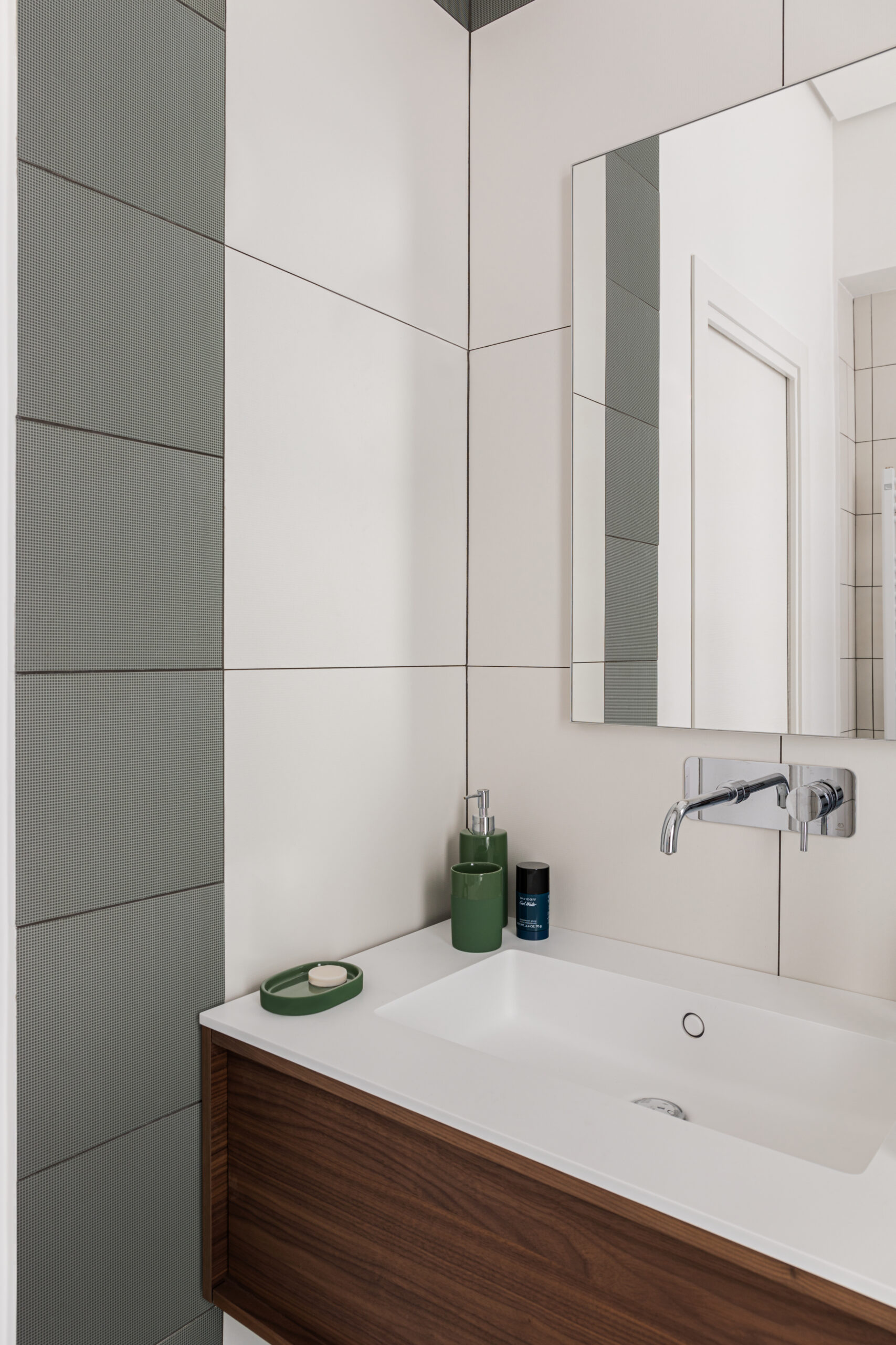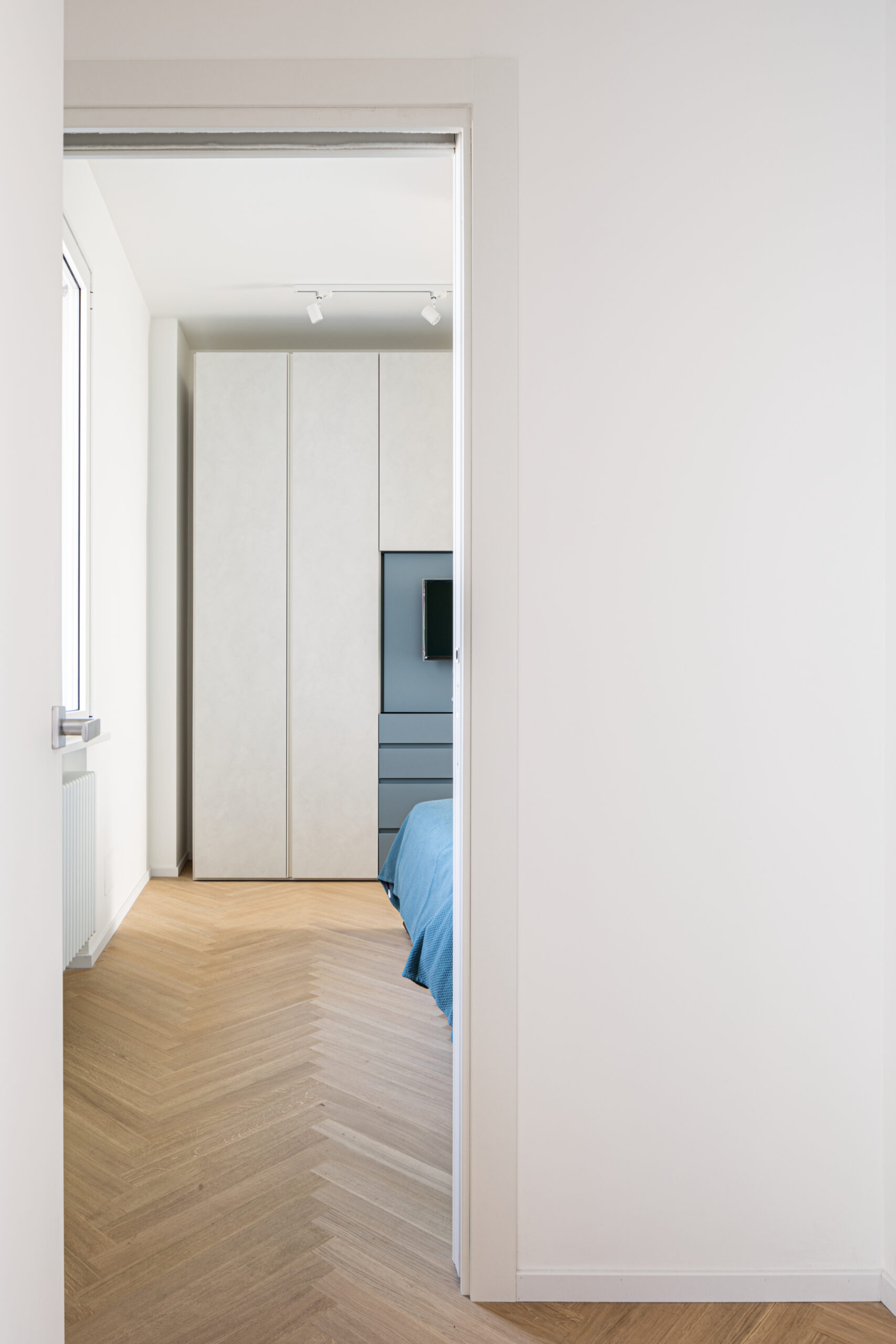 In questo appartamento in Prati a Roma abbiamo realizzato un progetto interamente su misura. L’appartamento si sviluppa in lunghezza e una delle prerogative era rendere parte integrante della zona giorno il terrazzo, elemento molto raro nel quartiere.