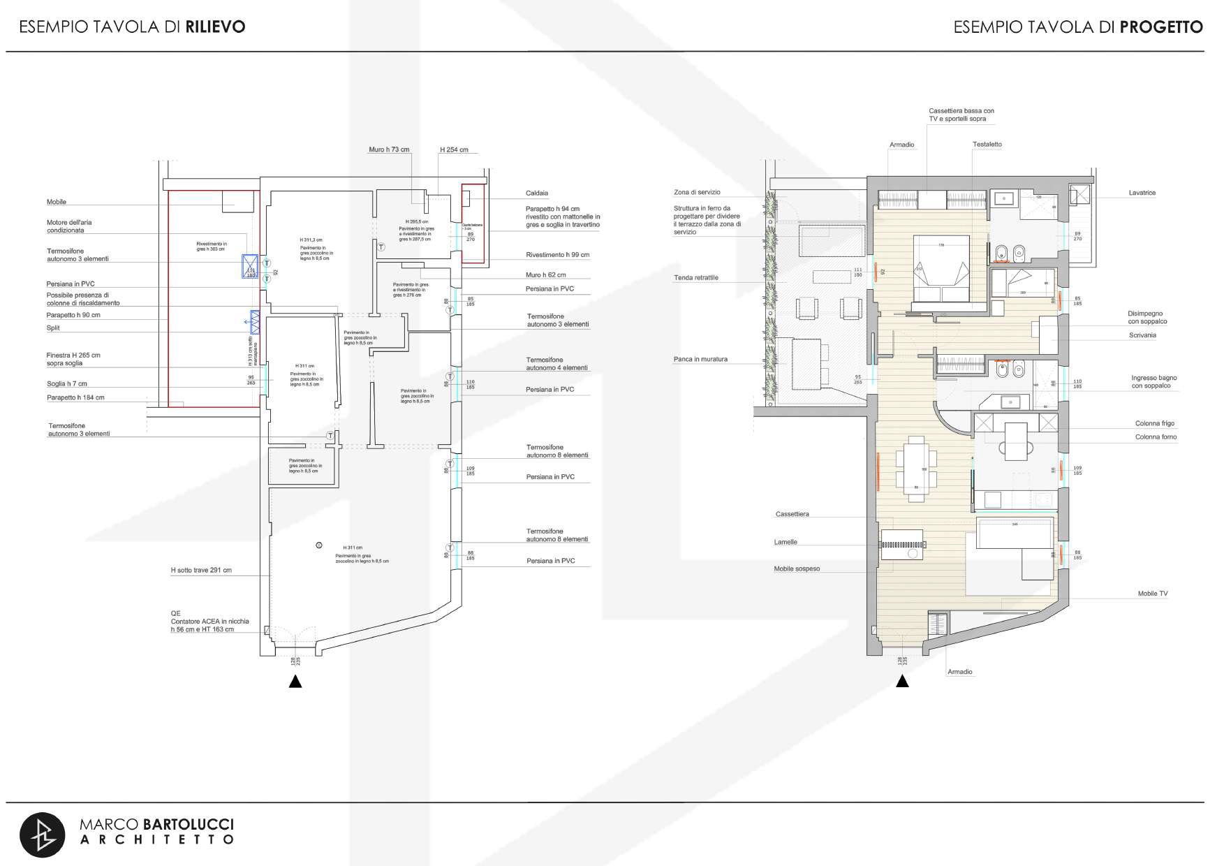 sulla base delle tue indicazioni ti consegneremo il progetto definitivo con la nuova conformazione degli spazi 1 settimana dal rilievo